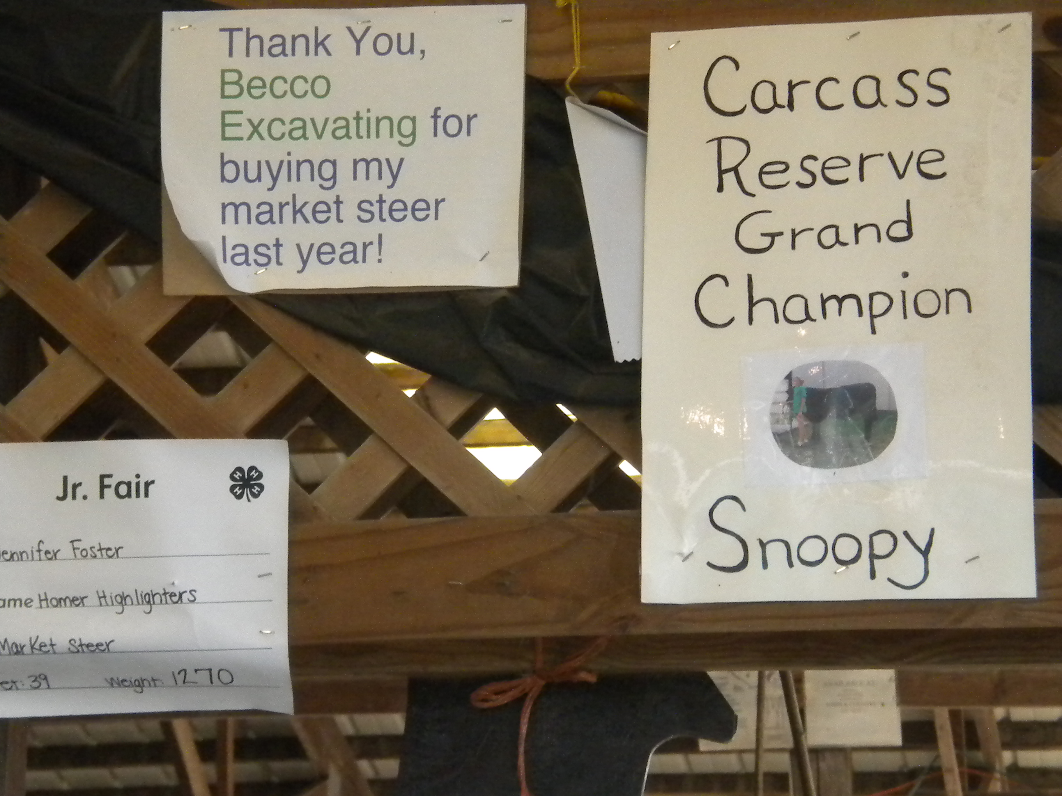 Next, we went over to the livestock show barn where the annual auction of animals takes place. Kids who have spent the last year caring for cattle, pigs, sheep, turkeys, and other varieties of livestock, learn one of the toughest lessons in life and leadership – letting go. The reward for their hard work is a nice payoff for their investment of time and effort. My son’s girlfriend and her family have been raising cattle and turkeys for years and this year, her younger sister’s cows won Champion County Born and Raised and Reserve Grand Champion carcass. Listening to the auctioneer is pure entertainment as he works the crowd to gain that extra nickel per pound for the 4-H’er. This represents college tuition to many of the kids. They work hard for it and earn a nice reward.